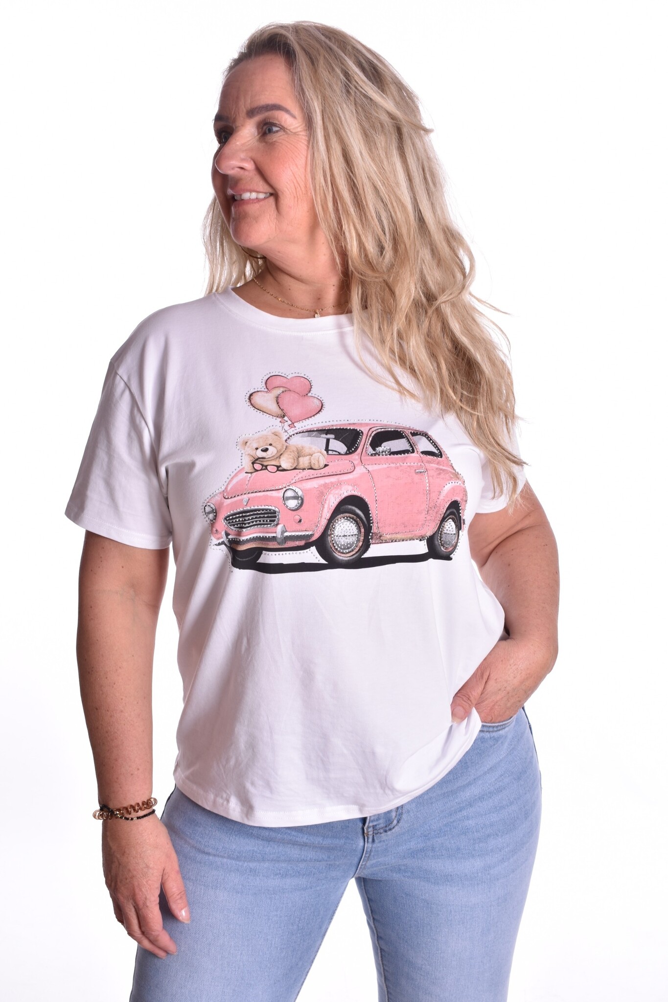 Het T-shirt is er in één maat en wij adviseren dat het t-shirt te dragen is t/m maat 42.