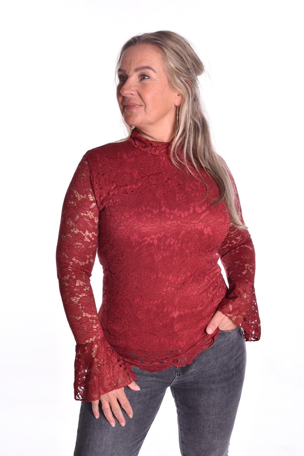 Top Angel is een kanten top met viscose voering en uitlopende mouwen.