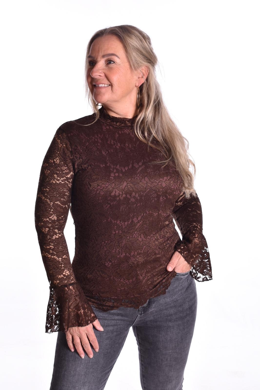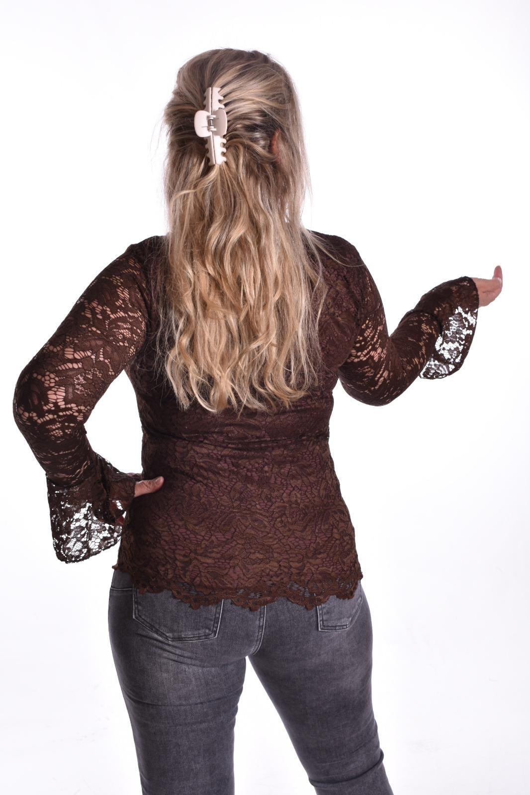 Top Angel is een kanten top met viscose voering en uitlopende mouwen.