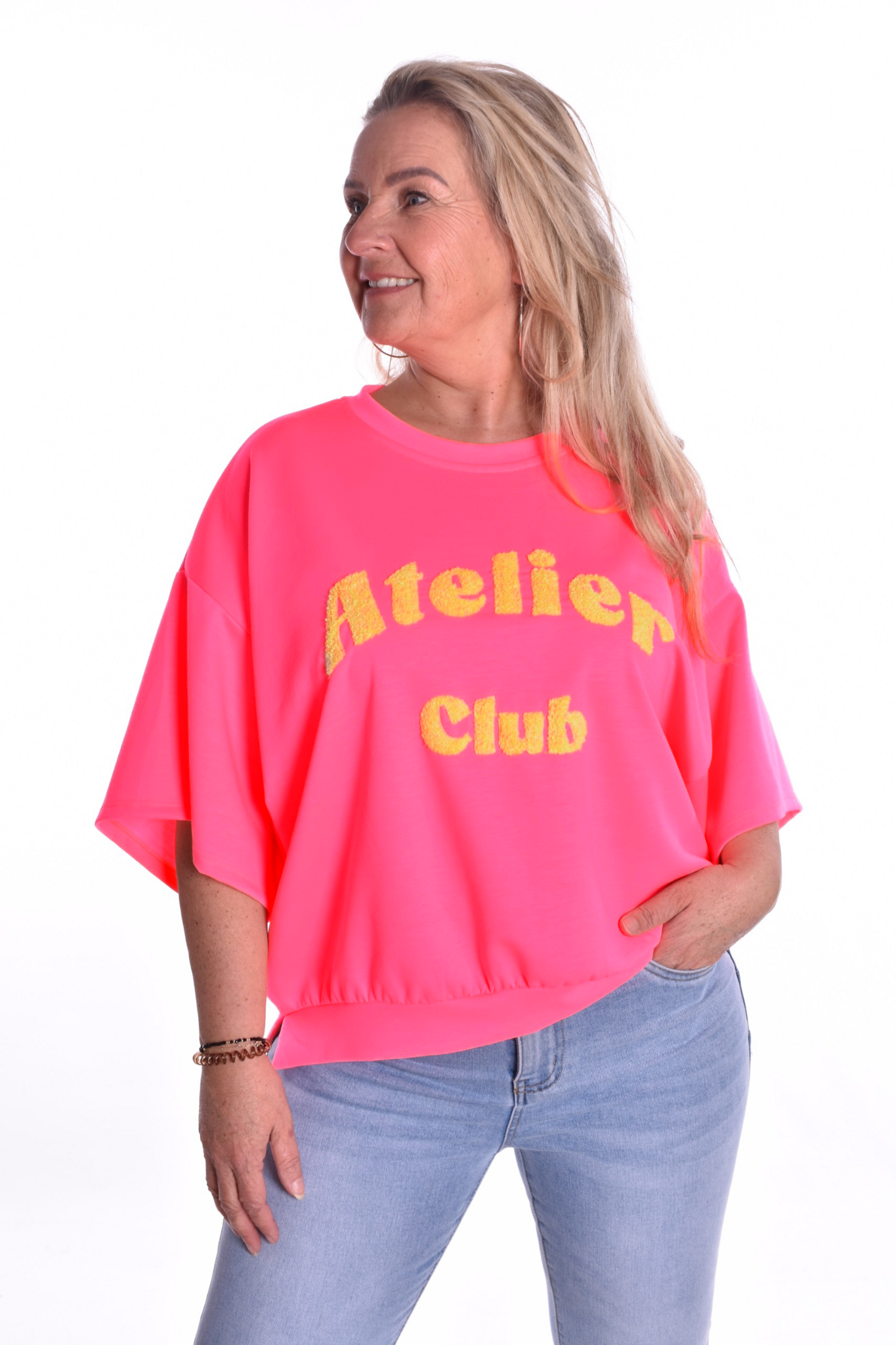 De Top Atelier is van een super zachte stof. Van het luxe merk Mooij. De top heeft badstof letters.