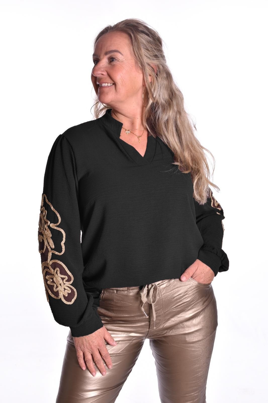 Ons model heeft maat 38/40, is 165 cm lang en draagt de maat S/M.