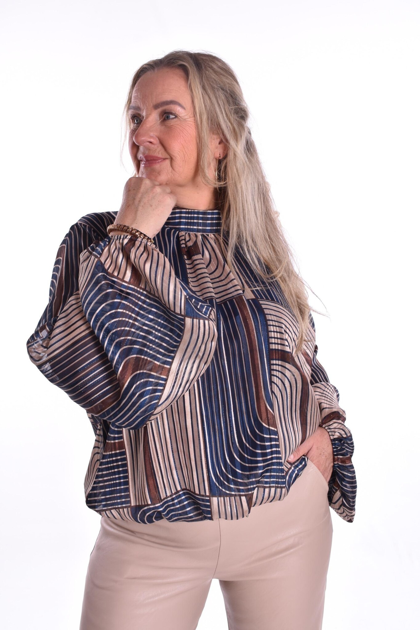 Top Fantasy is een ballontop met turtle nek, de top heeft een subtiel goud draadje in de print.