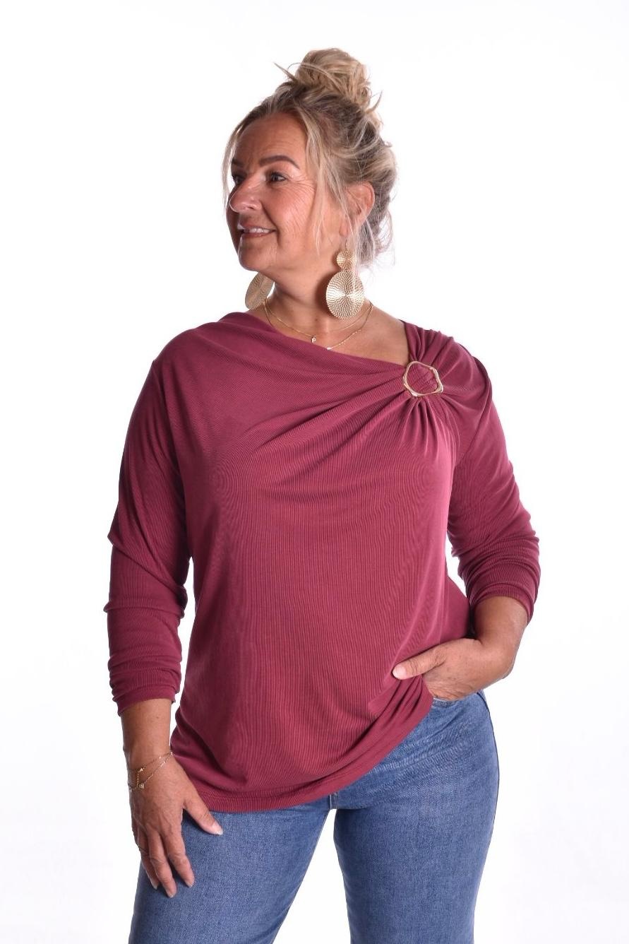 Top Gesp Lange Mouw heeft een geplooide hals met gesp.