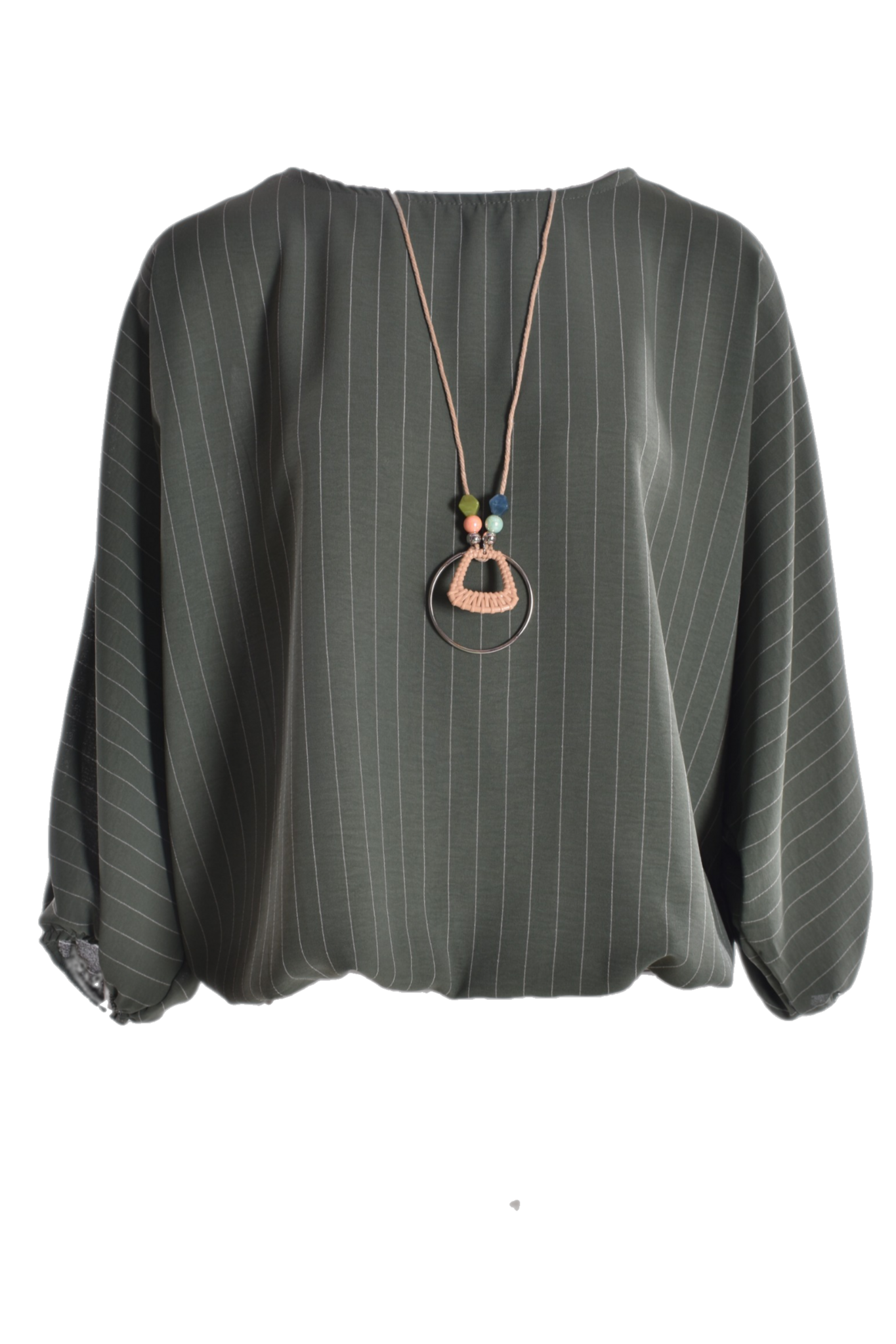 Het is een ballon top, er zit elastiek aan de onderkant. De ketting zit erbij!