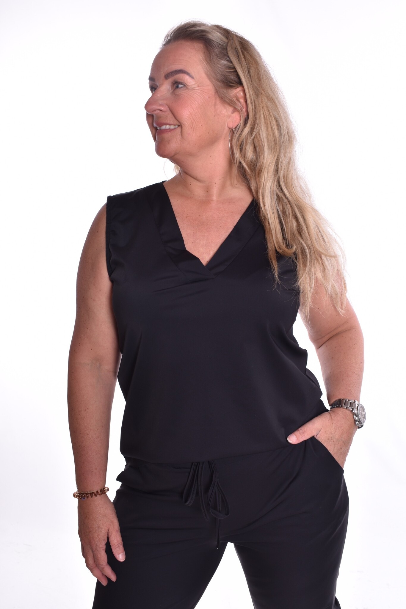 Mouwloze top met v-hals.