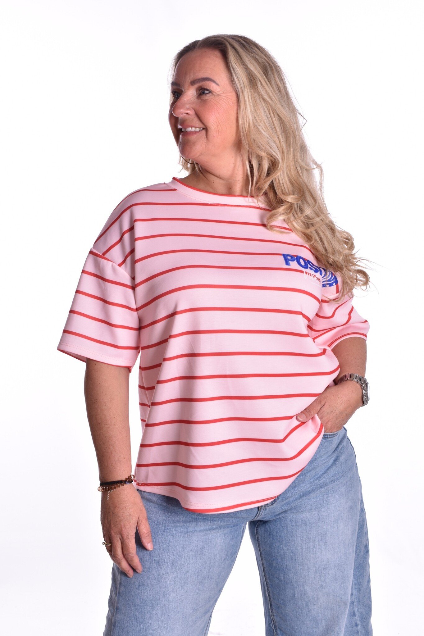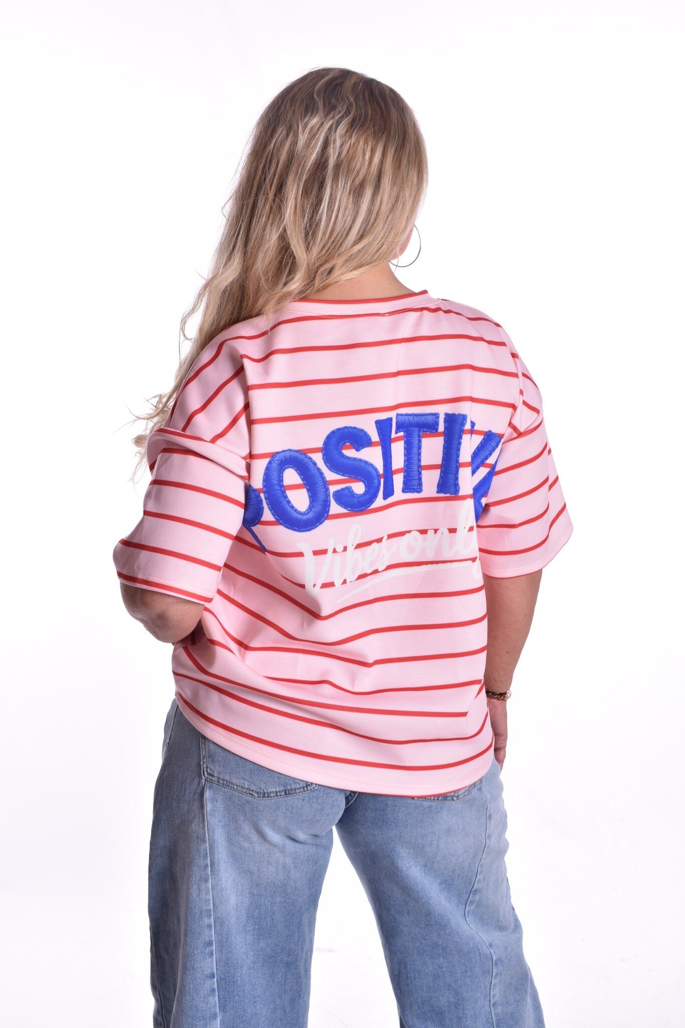 Lekkere zachte top met strepen en de tekst: Positive vibes only