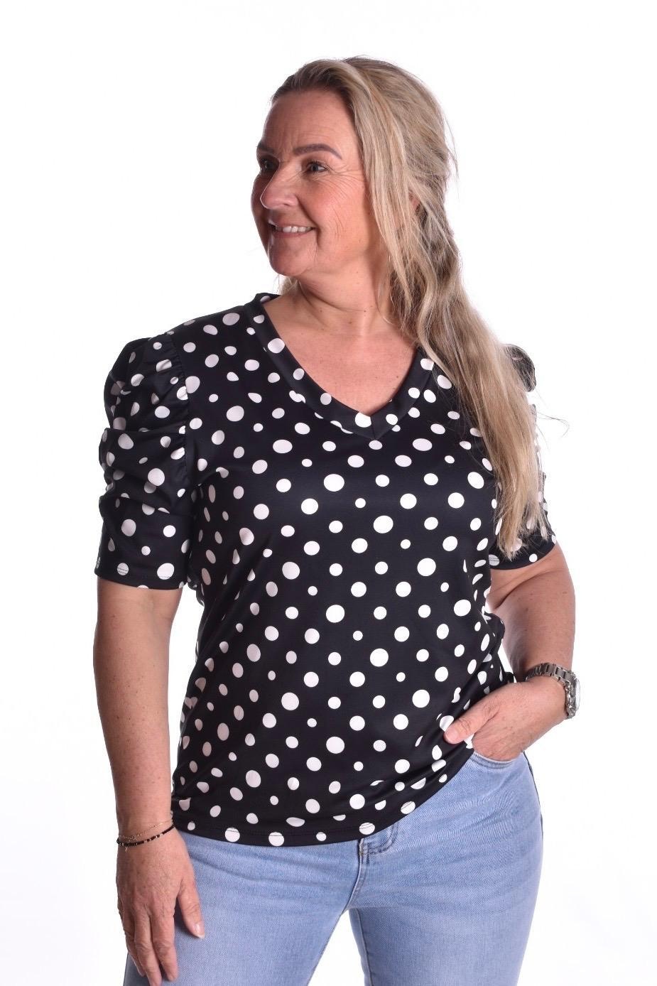 De top Punto is van een luxe travelstof en heeft pofmouwtjes!
