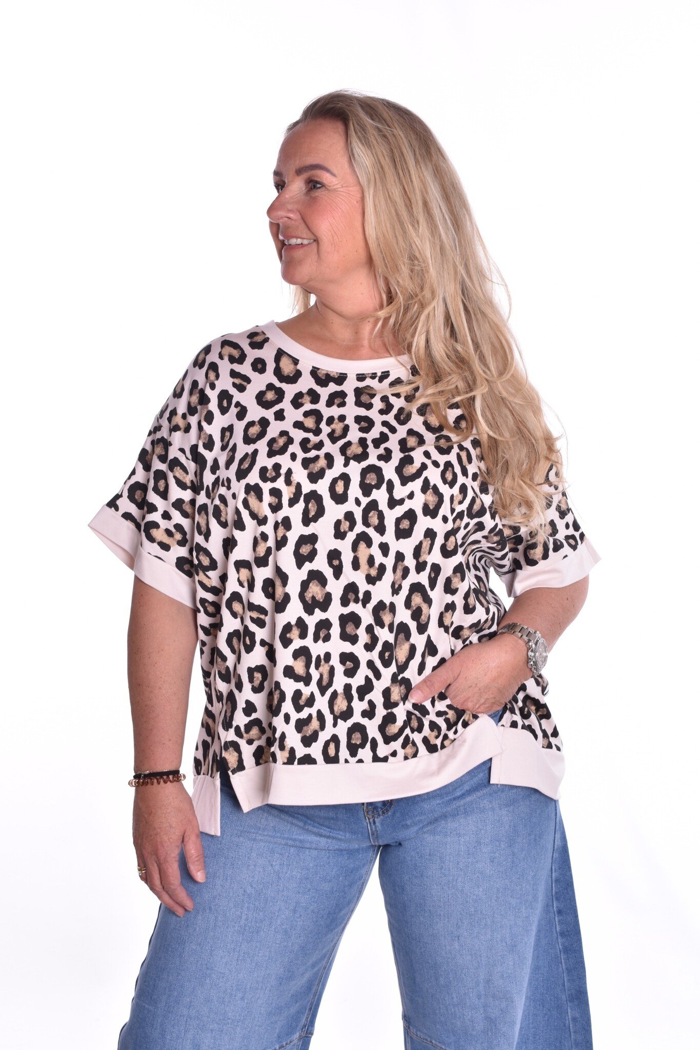 Oversized viscose top met panterprint en 2 voor splitjes.