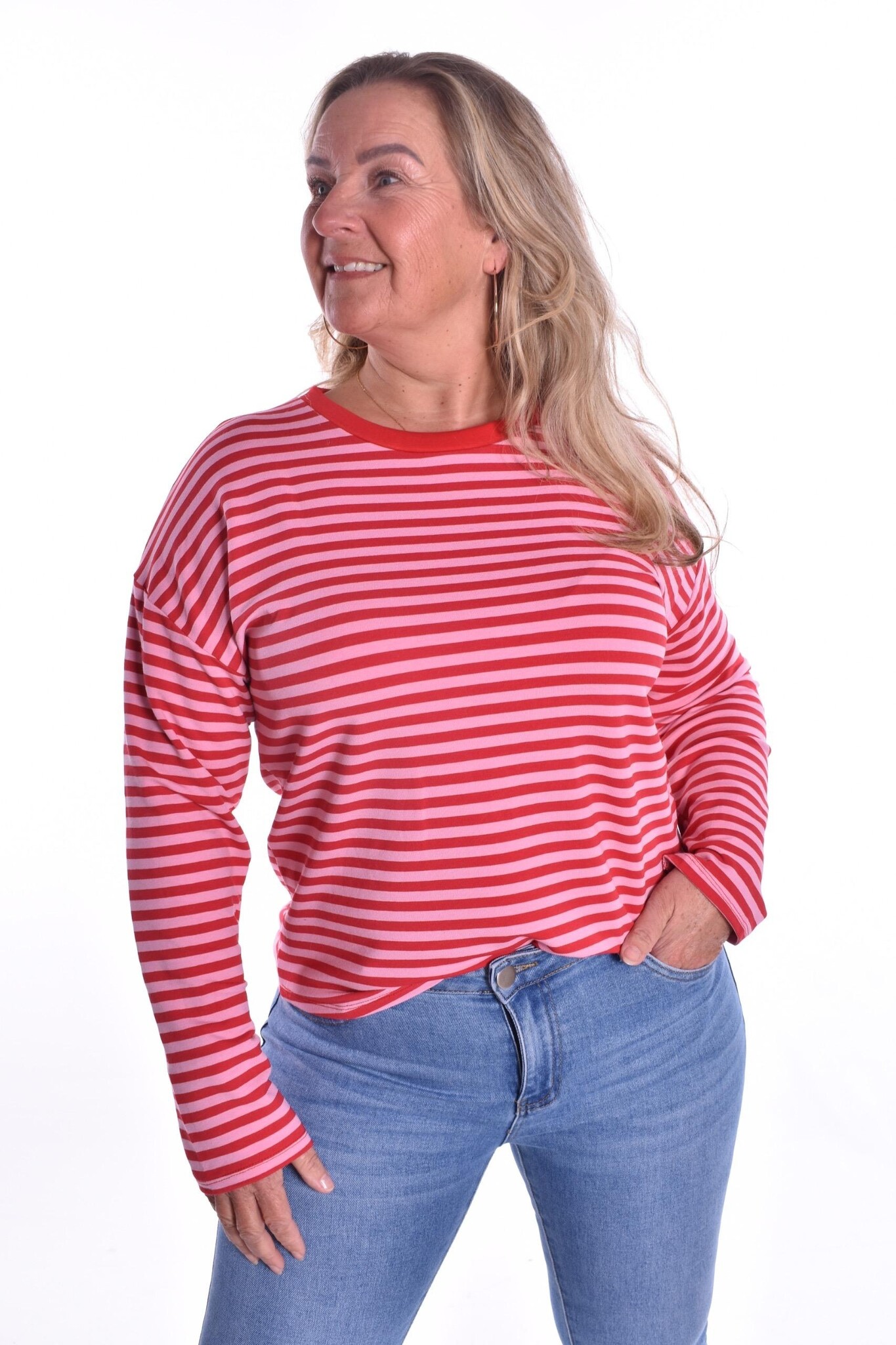 Ons model heeft maat 40, is 165 cm lang en draagt de maat S/M.
