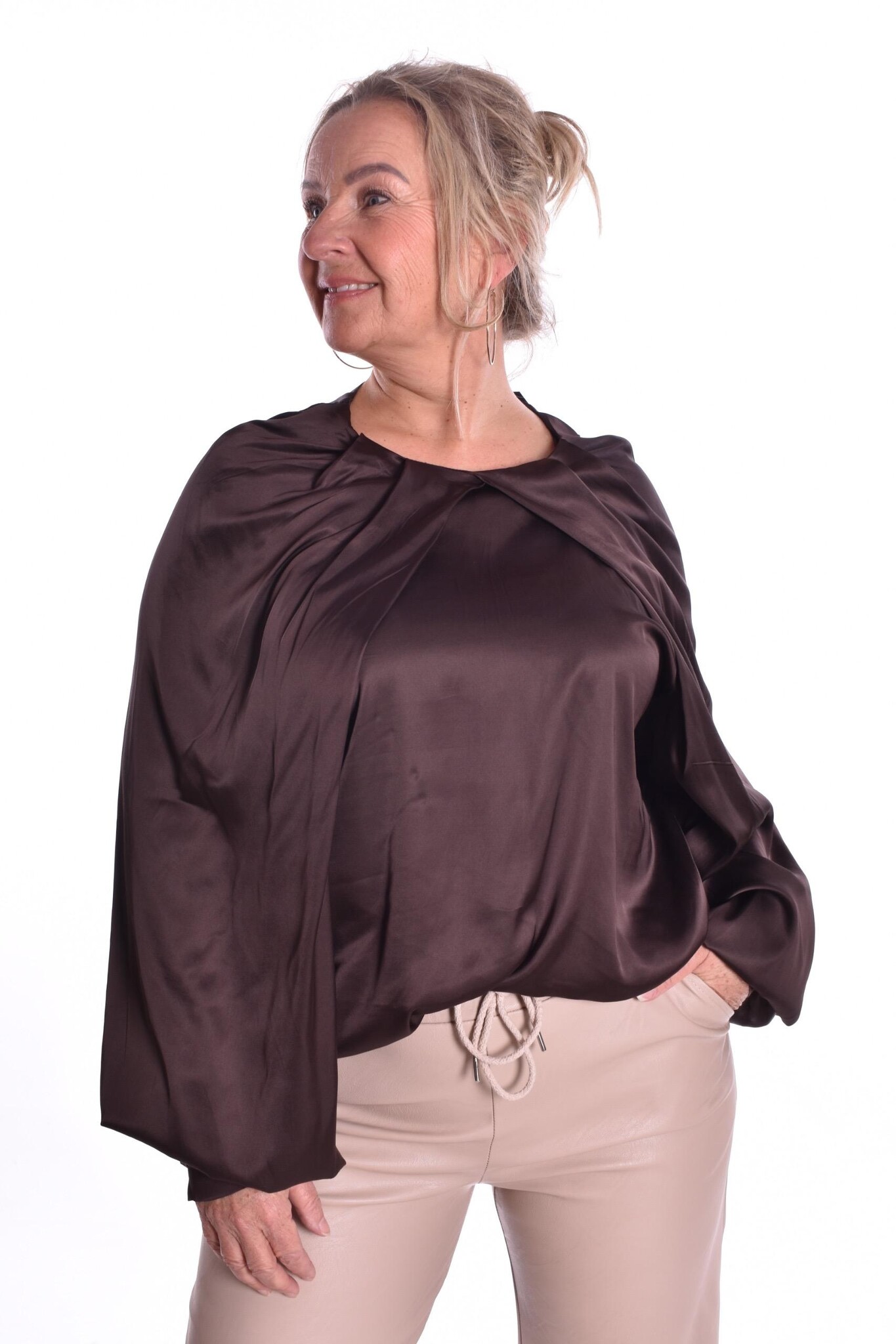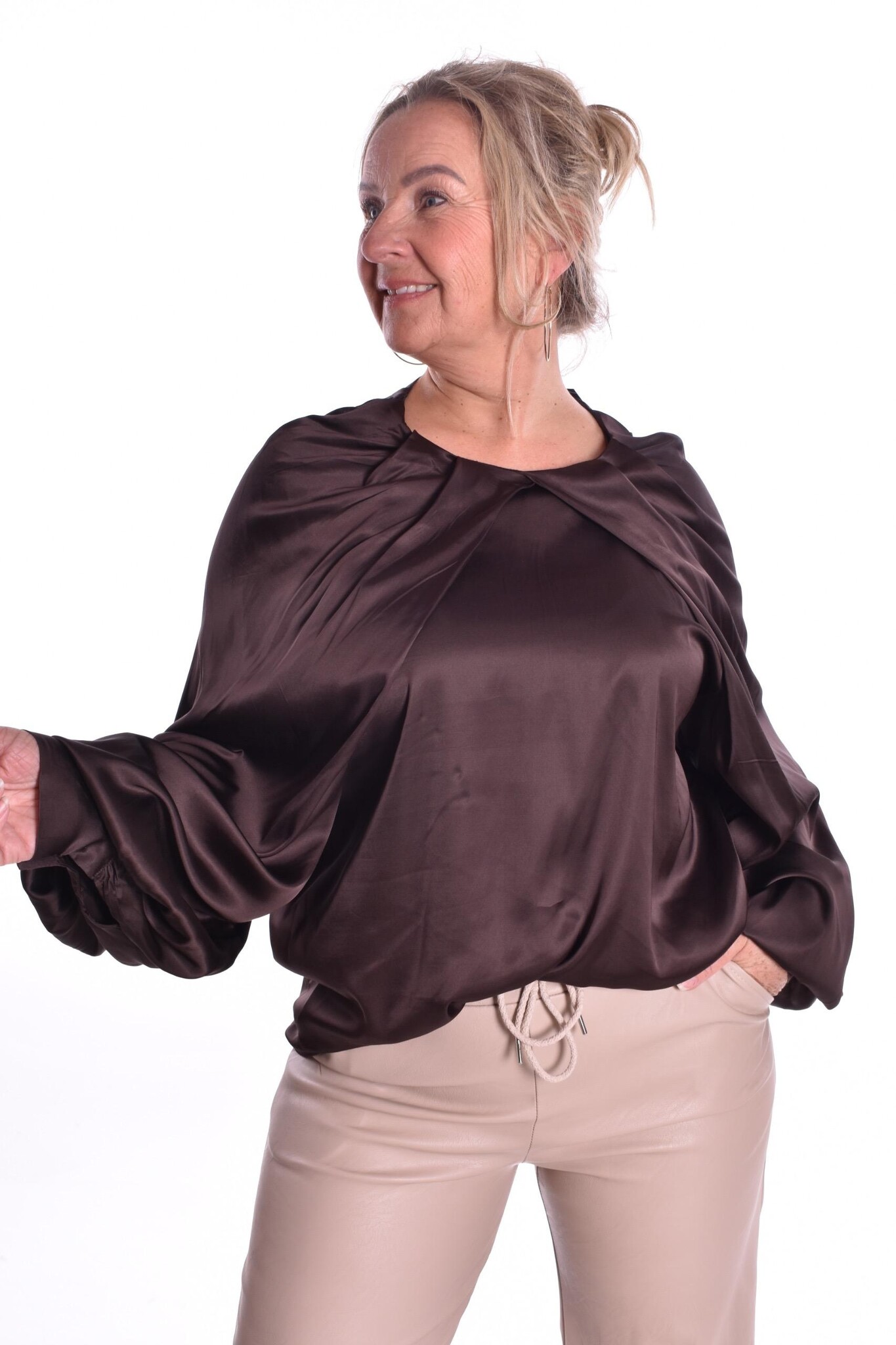 Top Satin Love is van een mooie kwaliteit, satijn look, plooi top met overslag mouwen, de manchetten hebben een knoopsluiting.