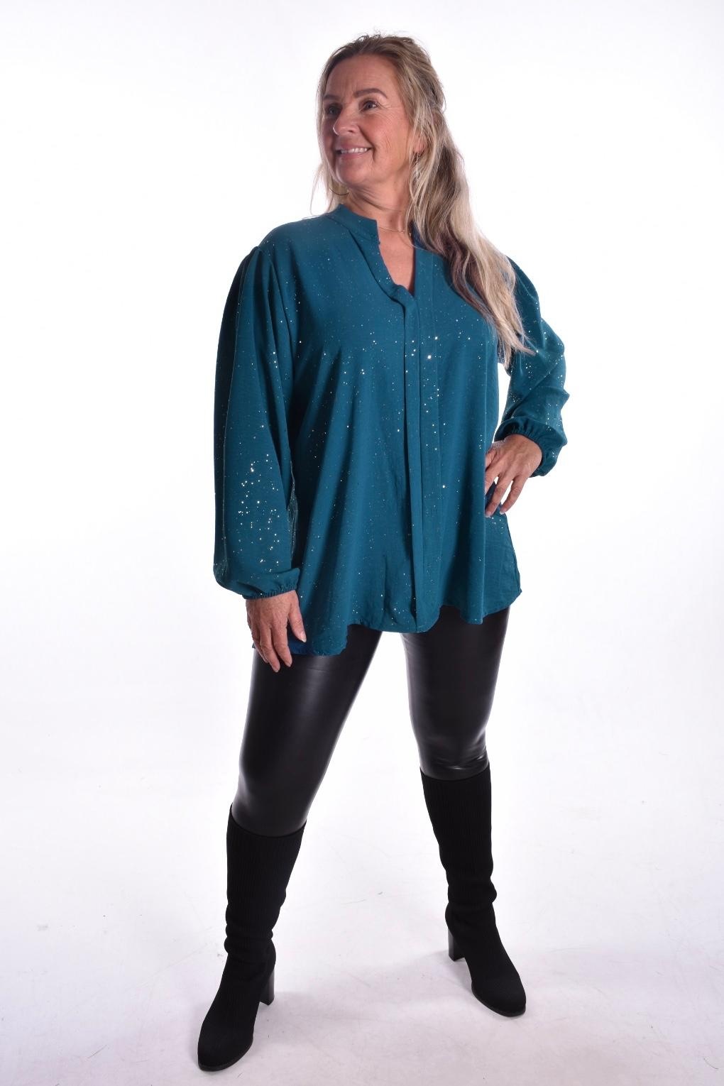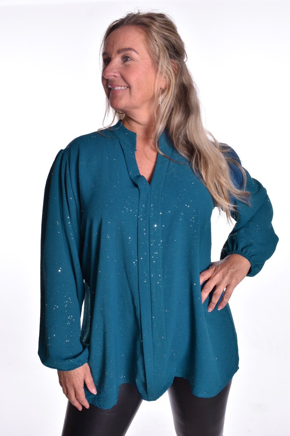 Ruimvallende top met glitter (Jeukt of prikt niet!)