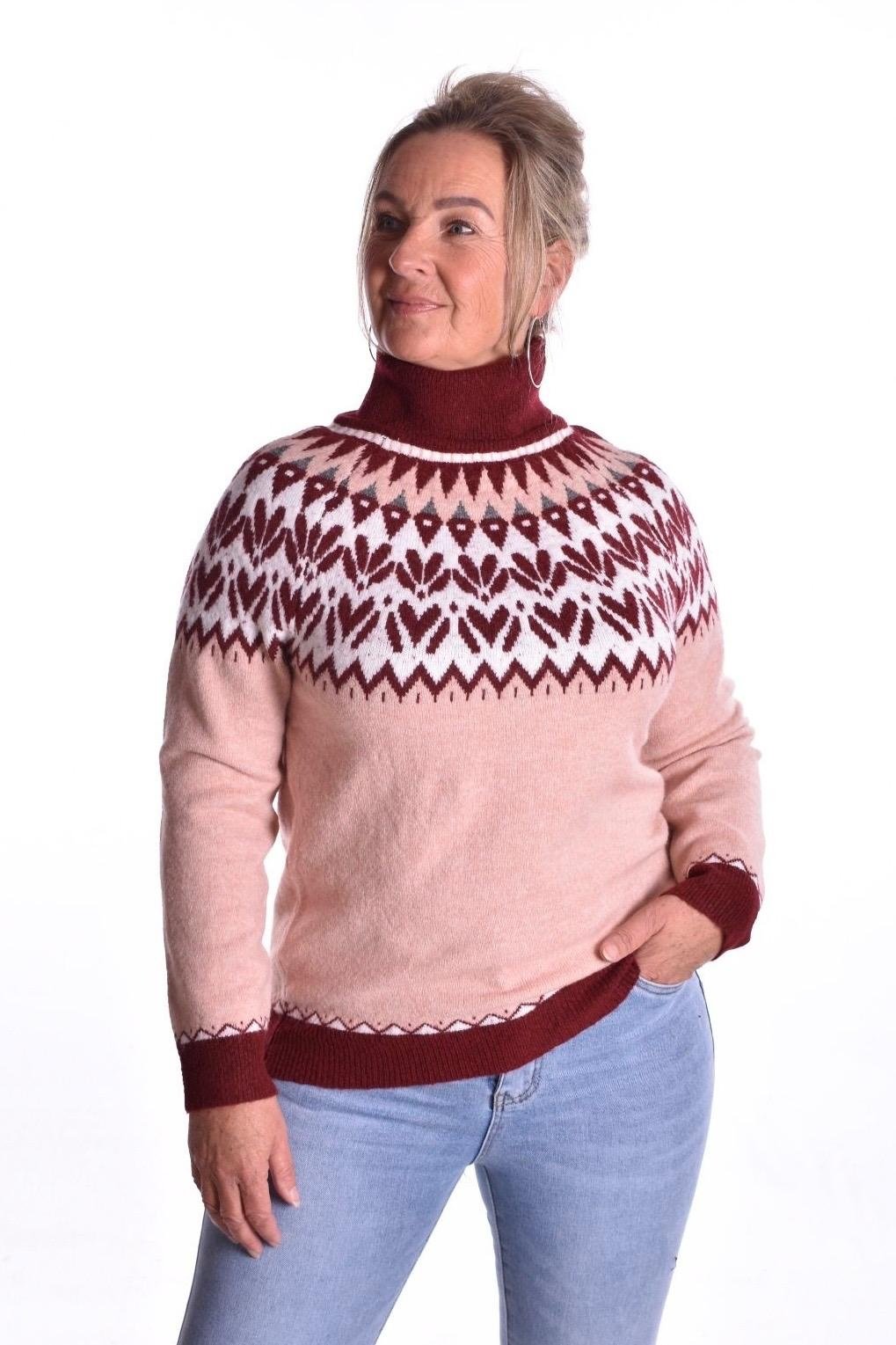 Dik gebreide Noorse trui, lekker warm met kol.