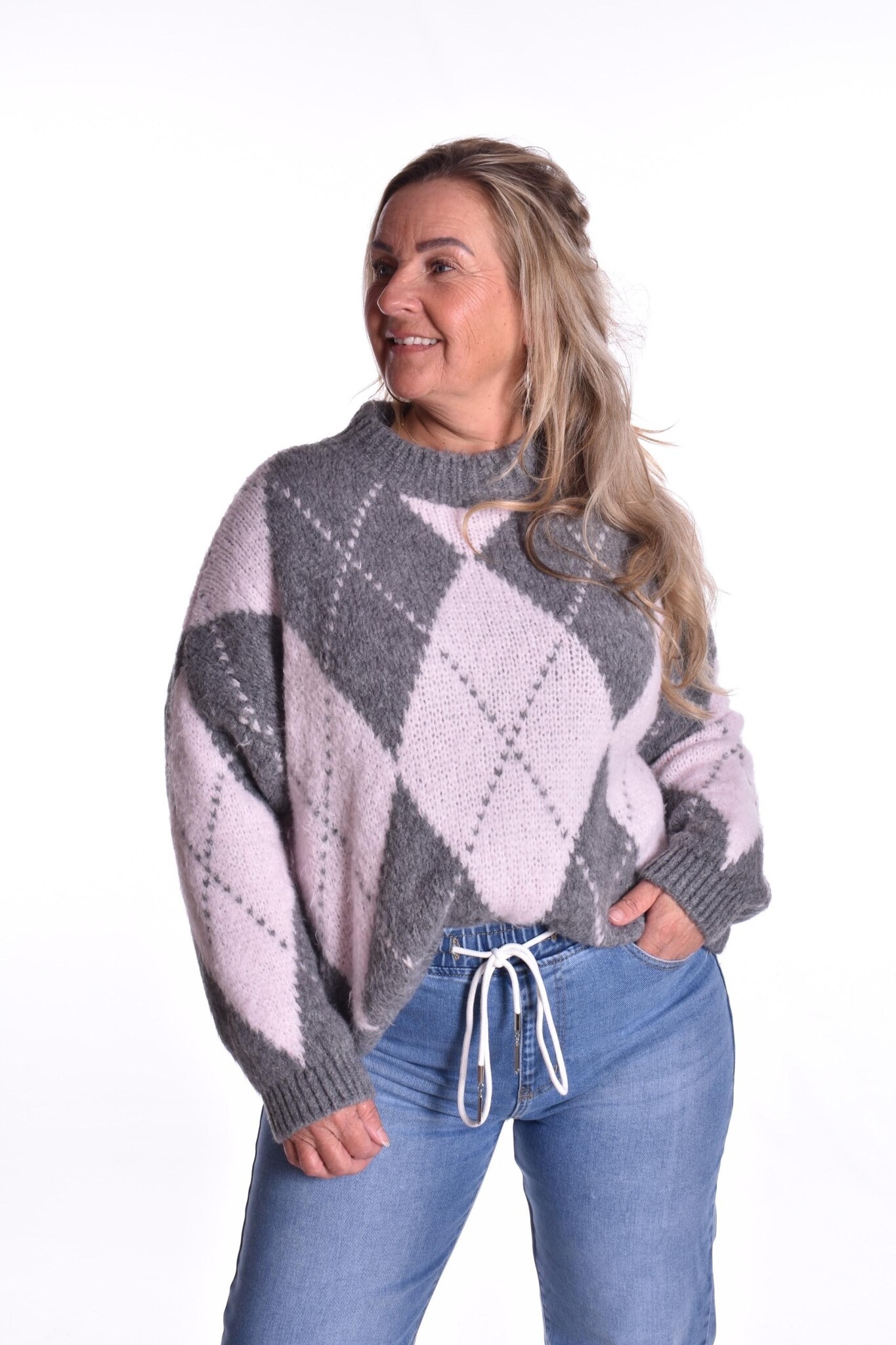 De trui Paris is een heerlijk zachte trui met een mooi ruit motief. De trui Paris is er in één maat en wij adviseren dat de trui te dragen is t/m maat 42.